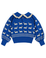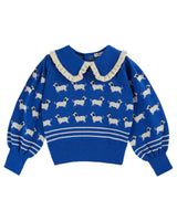 - SO FUN!! Sweater with a dog motif throughout and knitted ruffle collar
