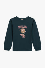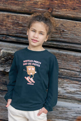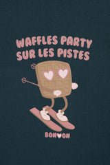 - Long sleeve tee-shirt with a playful skiing waffle graphic design on the front
