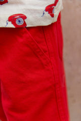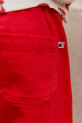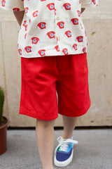 - Vibrant red Bermuda shorts