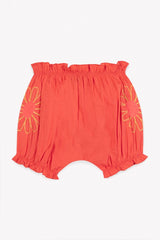 - Lightweight, bright coral baby bloomer