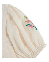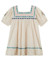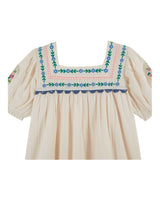 - Soft, breathable ivory dress with intricate hand-embroidered floral details