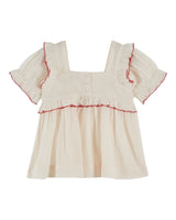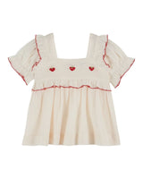 - Darling blouse in cream with hand-embroidered strawberry details