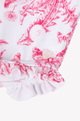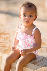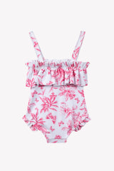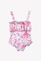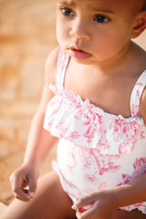 - Absolutely adorable little girls swimsuit with ruffle trims