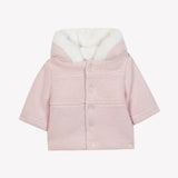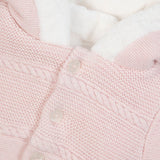 - Beautifully designed button down jacket with hood in intricate knit pattern