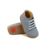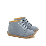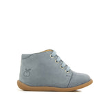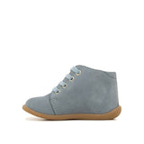 - This children's lace-up "first steps" shoe is presented in a blue nubuck leather version.