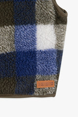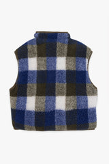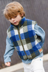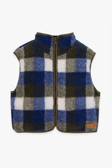 - Sleeveless checked fleece vest with zip front closure