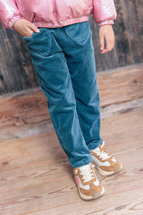 - Soft corduroy pants with a comfy elastic waistband and decorative pockets detail