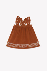 - Sleeveless corduroy dress with the cutest little embroidered detailing