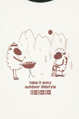 - Long sleeve baseball tee, with an adorable pair of camping sheeps!