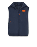 - reversible vest with concealed hood