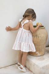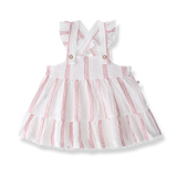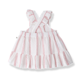 - Pinafore striped dress with ruffle on the hem and on the straps