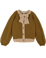 - Soft knit cardigan with colour blocked design and a bow neck detail