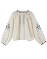 - Beautiful long sleeve embroidered blouse with smocking detail at the neckline