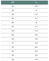 All our shoes are listed in European sizes. Approximate conversion for age and US size is below.