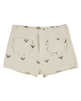 - Cream short with whimsical strawberry butterfly print