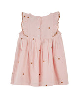- Delicate pastel pink baby dress with hand-embroidered details