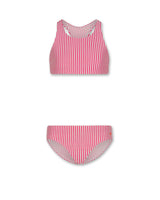 - striped swimsuit with a razor back top