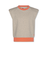 • soft sleeveless /cap sleeve top with waistband and neckline in contrasting orange/white stripe
