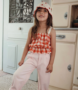 - Gingham print ruffle tank top with tie-shoulder straps