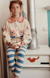 - Horizontal blue and cream striped leggings