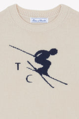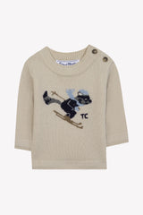 Beige pullover with image of a skier