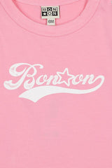 - Soft candy pink t-shirt with white graphic