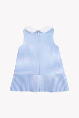 - STRIPED SLEEVELESS DRESS WITH EMBROIDERED TRIM COLLAR